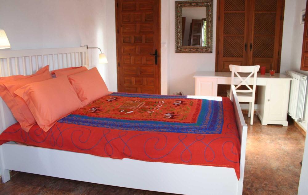 Habitación con cama de matrimonio 160 x 200; escritorio, ropero, balcón, TV + DVD + CD. Baño privado con ducha. Entrada privada. Vista preciosa a la sierra. Habitación situada en el antiguo bar de tapas del molino. Ambiente naranja.